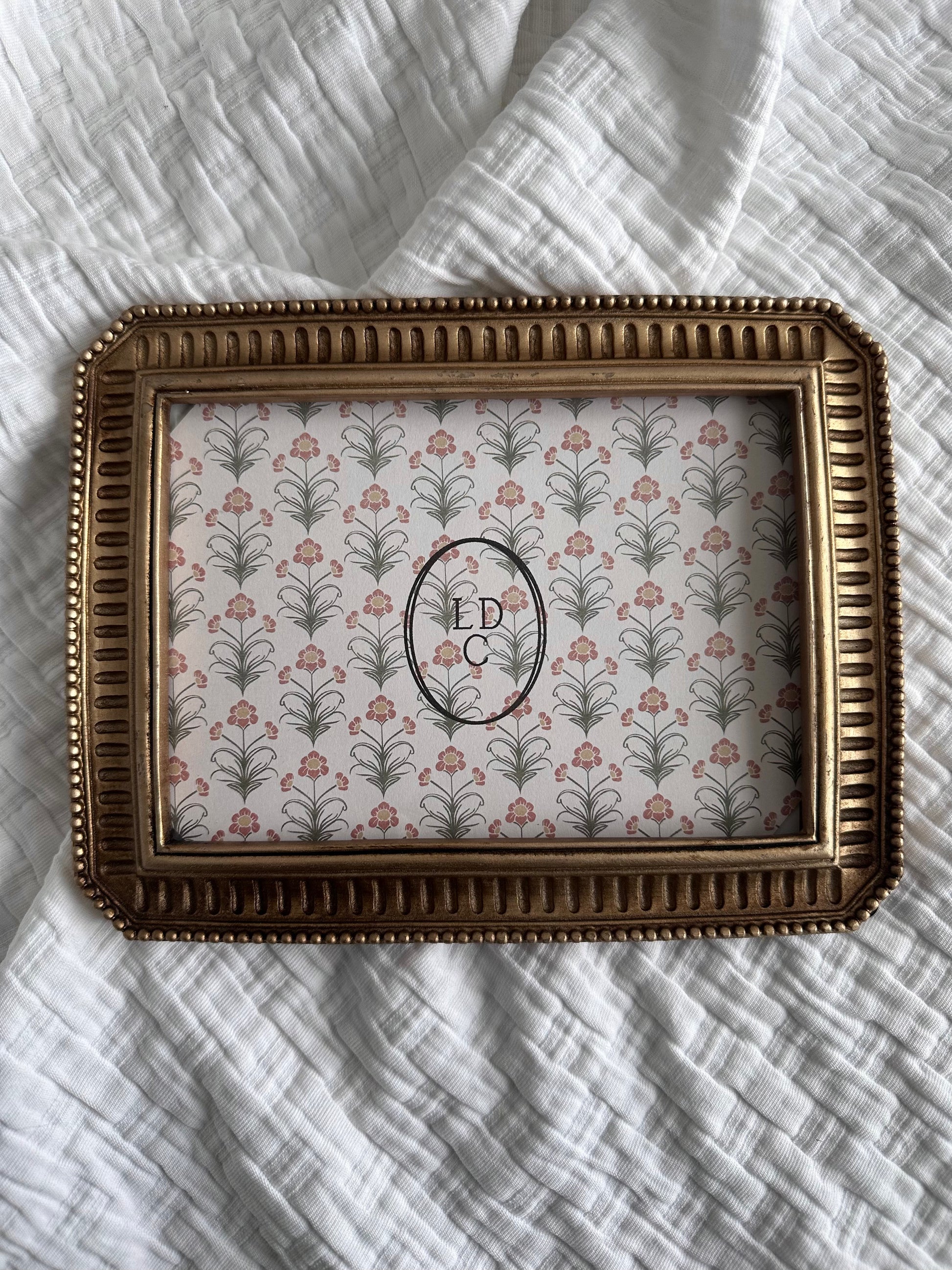 A beautifully detailed 5"x7" vintage inspired gold frame