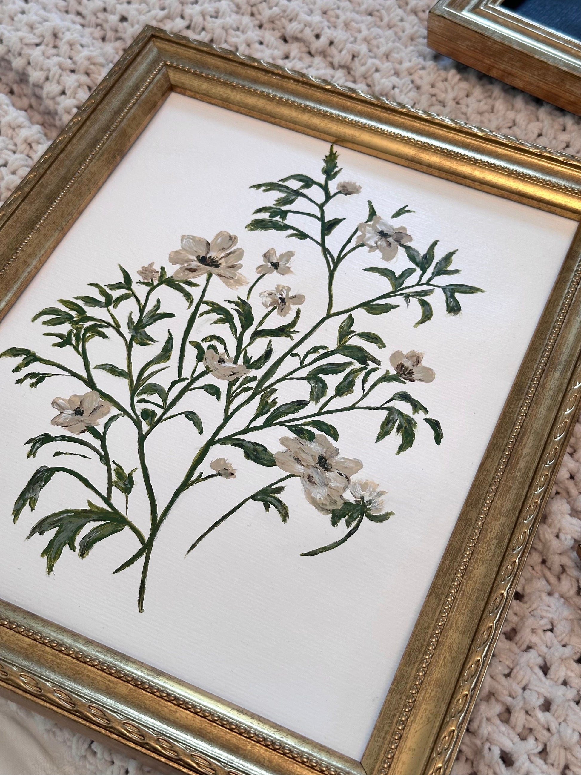 "Petal Pause' 8"x10" original art in a vintage inspired gold frame.