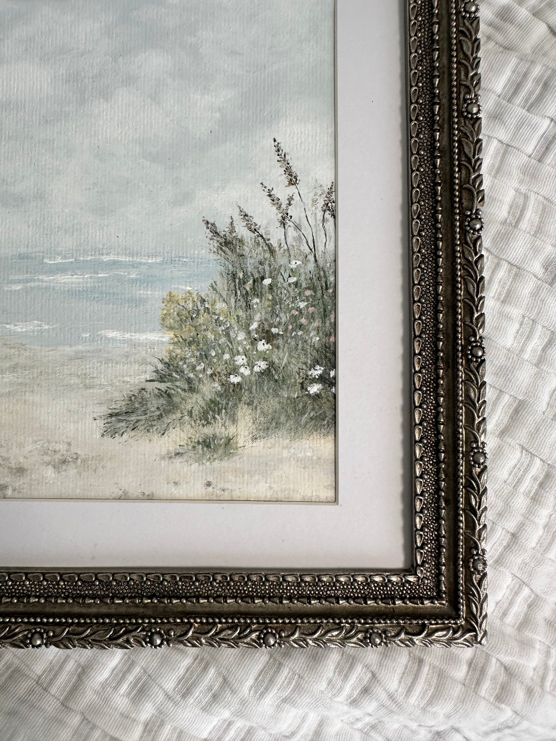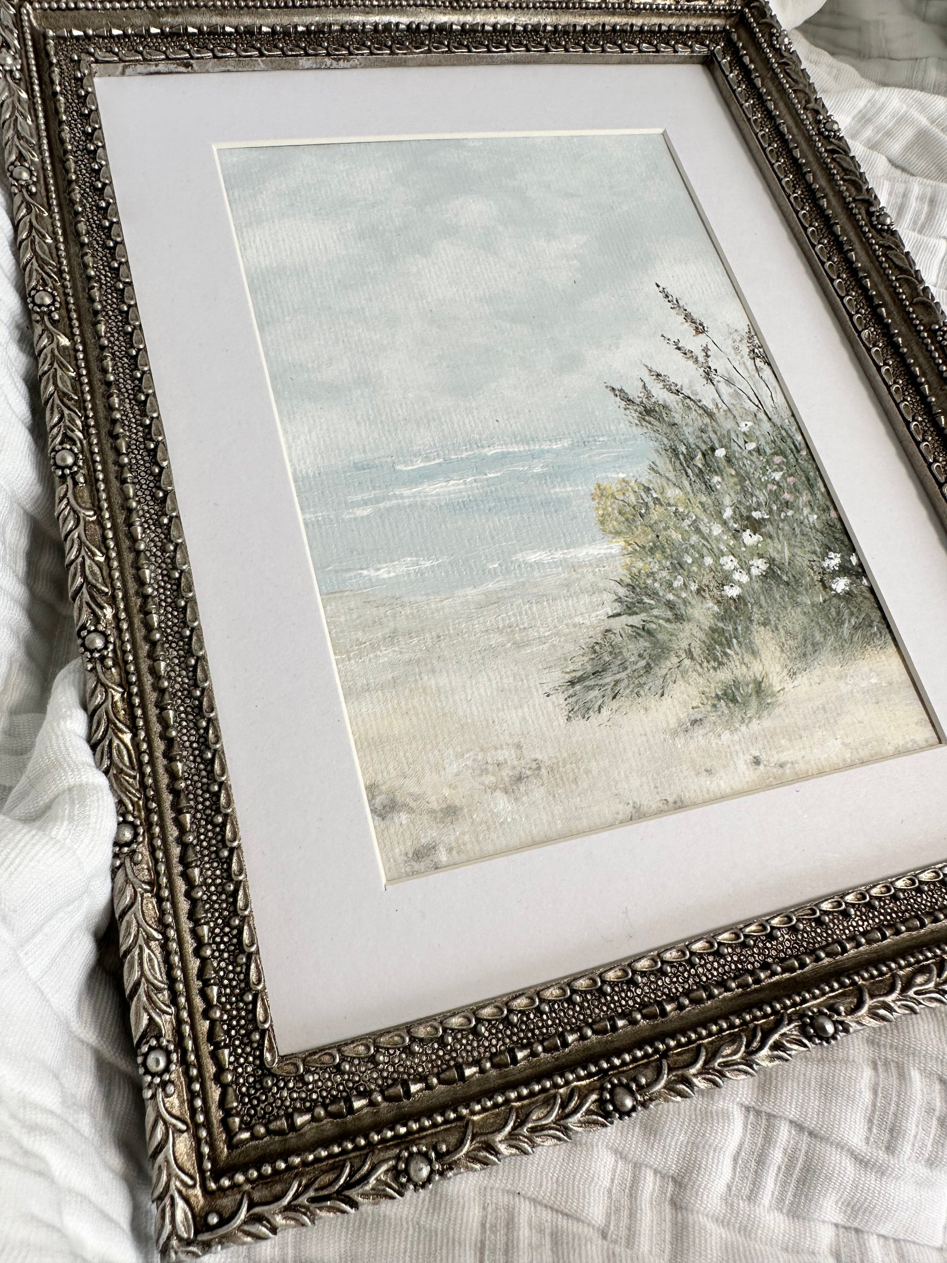 "Still Hearts" 5"x7" original piece framed in an 8"x10" matted ornate aged silver frame. ( hung or table top )