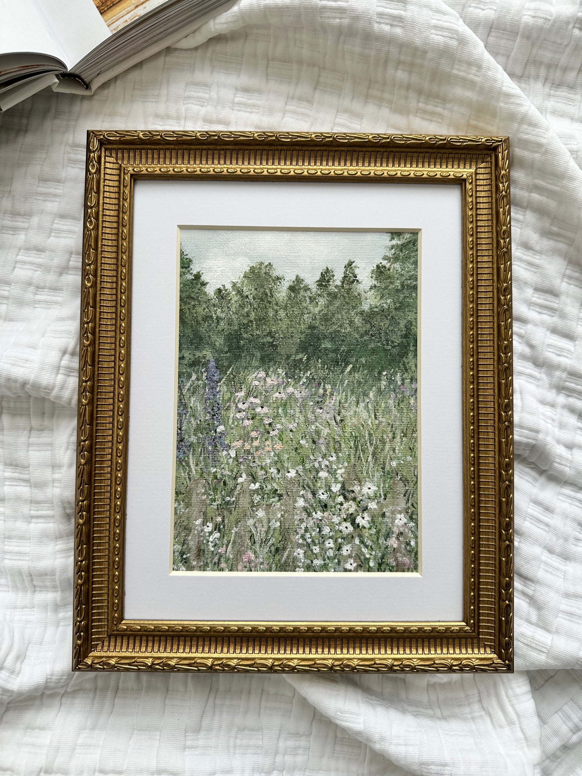 "Wildflower Dreams original art in 7"x9" vintage inspired frame matted to 5"x7"